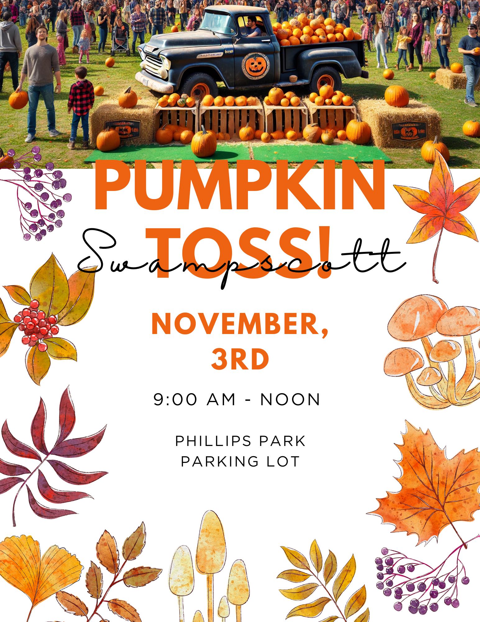 Wondering what to do with your pumpkins after Halloween? Join Swampscott's Solid Waste Advisory Committee and the DPW at our first annual free Pumpkin Tossing Event!