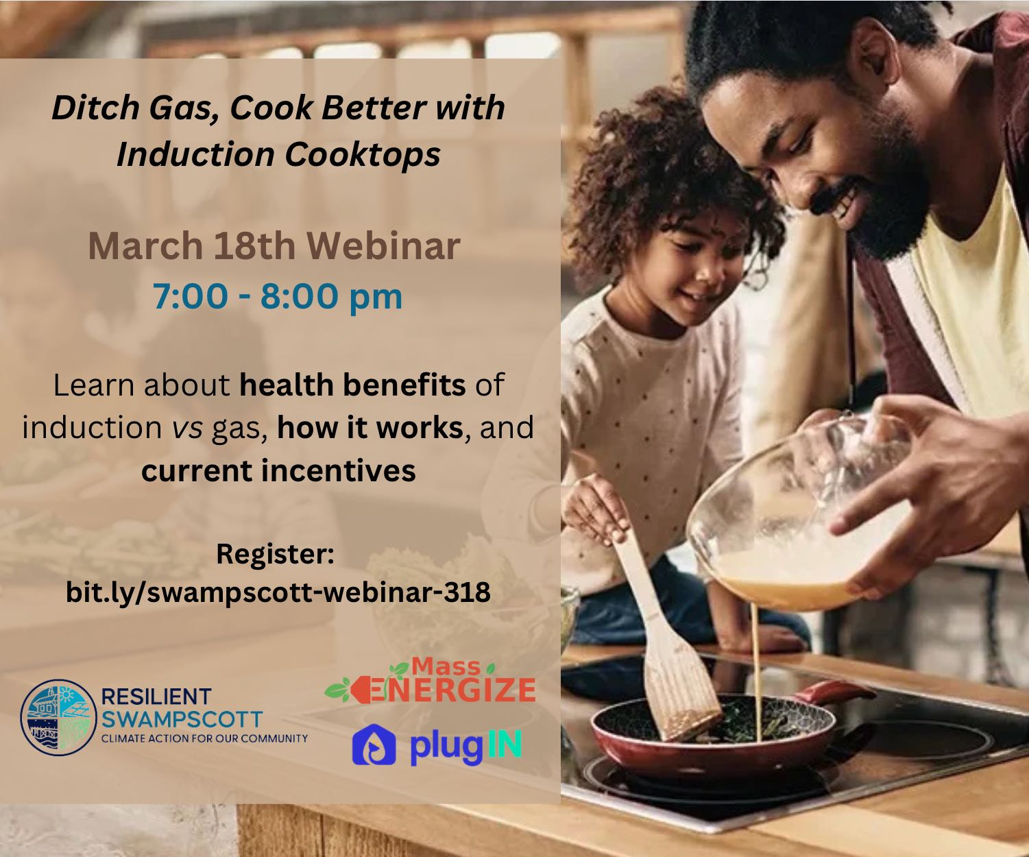 Join us for an online webinar on March 18th from 7-8pm! Andee Krasner (Greater Boston Physicians for Social Responsibility and co-author with Rocky Mountain Institute of a report on gas stoves) will share the facts about gas stove risks and the benefits of induction cooking. We’ll also hear from neighbors using induction cooktops, plus plenty of time for Q&A.